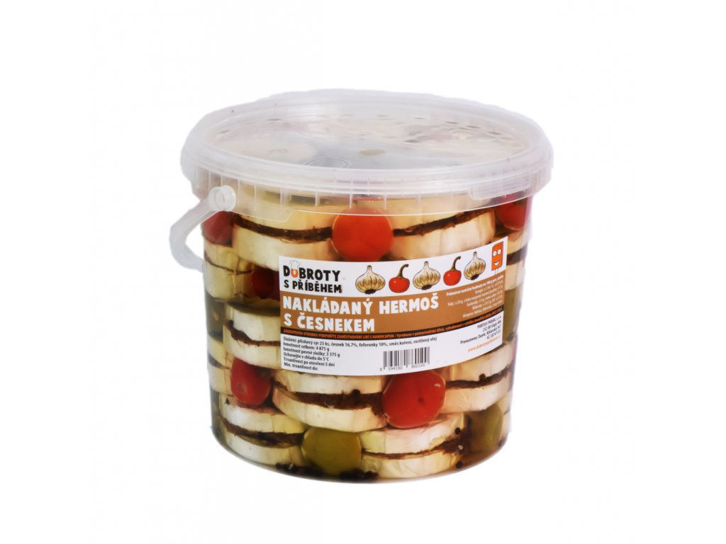 Složení: hermelín 25 ks, česnek, feferony, směs koření, rostlinný olej