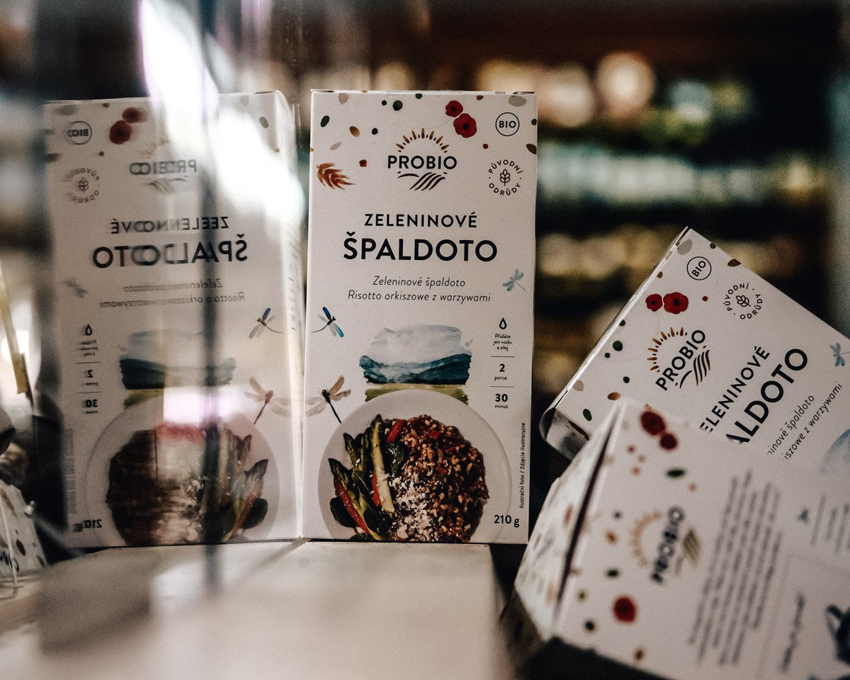 ŠPALDOVÉ kernotto* (kroupy) 83 %, sušená zelenina* (cibule* 2,4 %, mrkev* 1,9 %, petržel kořen*, rajče*, paprika červená* 1,4 %, paprika zelená* 1,4 %, CELER*), ochucovací směs (jedlá sůl s jódem [sůl, jodičnan draselný], sušená zelenina* [mrkev*, petržel*, pastiňak*, cibule*, petržel nať*, CELER*, pórek*], libeček*, rakytník*, kukuřice*, sladká mletá paprika*, fruktóza). Může obsahovat stopy skořápkových plodů a sezamu. *produkt kontrolovaného ekologického zemědělství