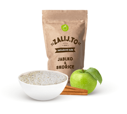 Kaše JABLKO-SKOŘICE je složena z čistě přírodních surovin jako jsou ovesné vločky, směs ořechů a semen (vlašské ořechy, mandle sladká, kešu, chia semena, lněné semínko), sušená jablka, skořice a sušeného kokosového nektaru. Vysoký podíl ořechů a semen zajišťuje přísun velké množství energie v podobě tuku, v kombinaci s vločkami a dalšími složkami tvoří nejen dokonalou harmonii chuti, ale také snídani plnou živin, která skvěle startuje každé ráno. Produkty nabízíme i v proteinové variantě, kdy kaše vedle bílkovin z ořechů a semen obsahuje také přidaný kvalitní 80 % syrovátkový protein.
