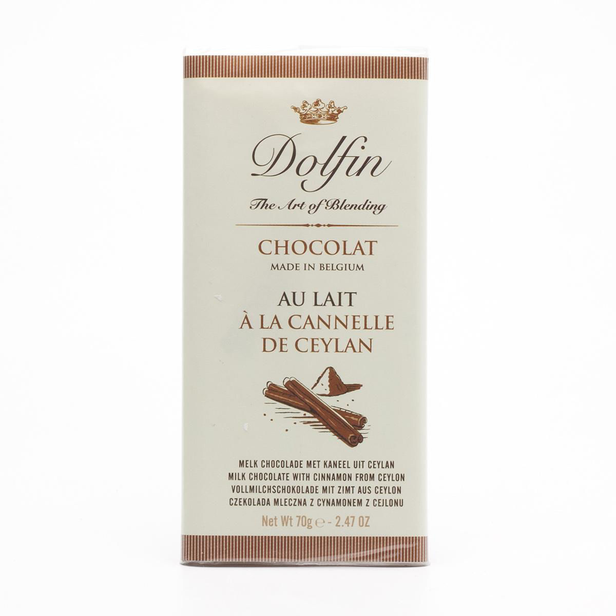 Mléčná čokoláda se skořicí ze Sri Lanky Dolfin je kvalitní belgická čokoláda s osvěžující a neokoukanou příchutí. Štiplavá skořice dodává sladké čokoládě dynamičnost a originalitu. Mléčná čokoláda obsahuje minimálně 32 % kakaové a 20 % mléčné hmoty.