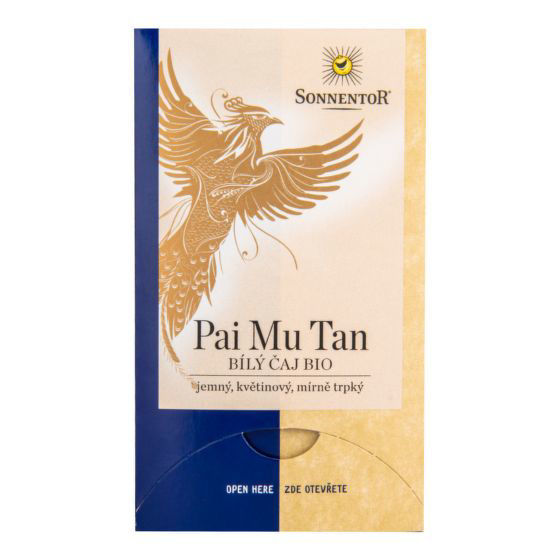Bílý čaj Pai Mu Tan* (obsahuje kofein). *produkt kontrolovaného ekologického hospodářství