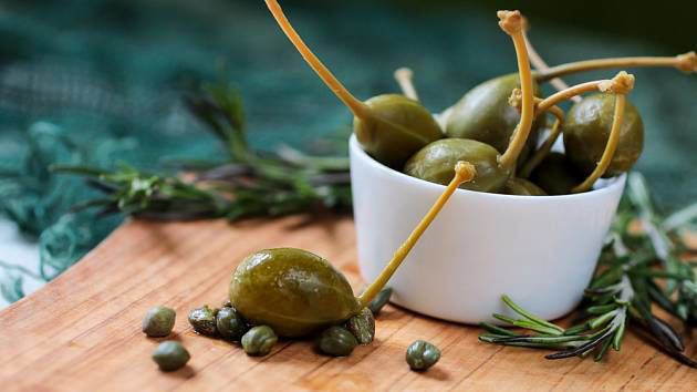 Složení: Kapary, voda, bílý vinný ocet, sůl, regulátor kyselos ti: kyselina citrónová, antioxidant: kyselina askorbová