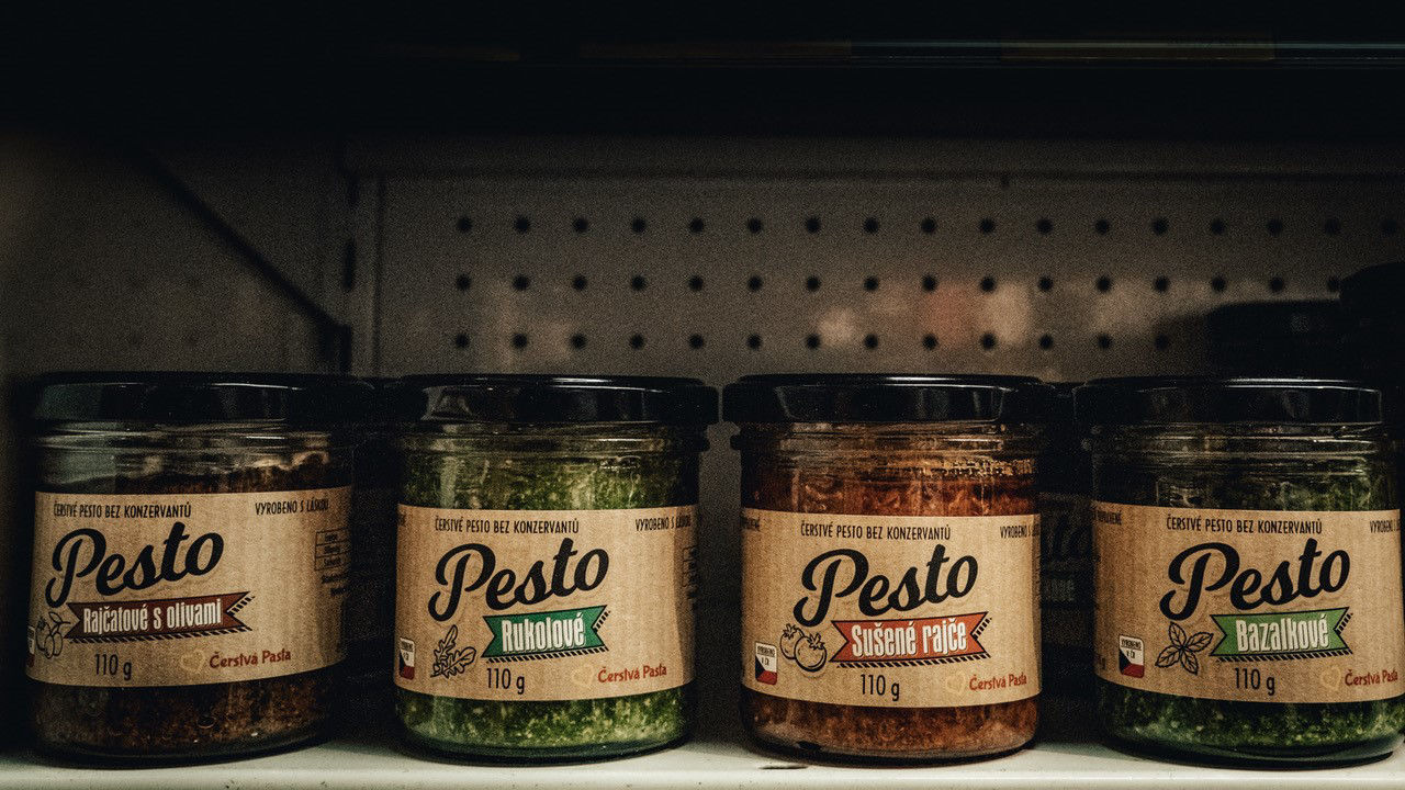 Bazalkové pesto je pro vás nejznámější. Připravuje se z čerstvé bazalky, kvalitního parmezánu a opražených piniových semínek. Konzervuje se kvalitním olivovým olejem. Na porci pasty cca jedna lžíce. Po použiti zalijte opět olivovým olejem.