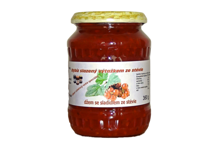 Červený rybíz, výtažek ze stévie sladké (steviolglykosidy), želírující látka pektin (citrusový).