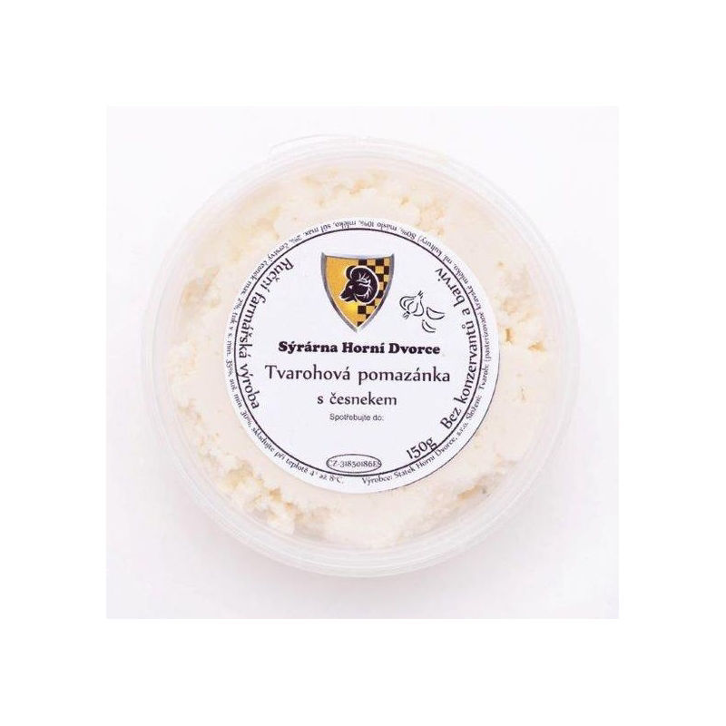 Složení: ovčí bryndza, kravský tvaroh, sůl max. 2%, česnek max. 2%, tuk v sušine min. 40%, sušina min. 30%