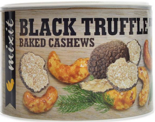 Pečené kešu ořechy s lanýžovým práškem, solí a pepřem.