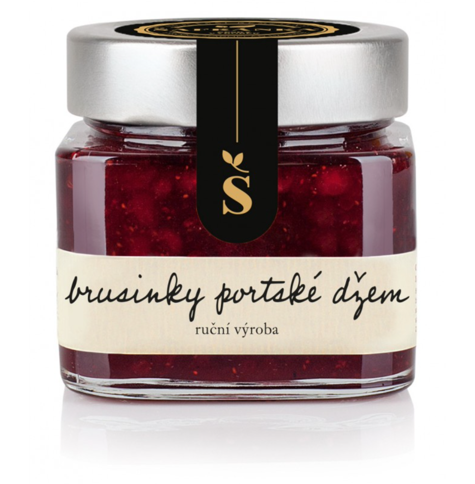 Jedna sklenička džemu 270g obsahuje zhruba 350g čerstvých brusinek, bio třtinový cukr, skořici a portské víno.