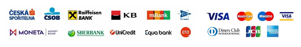 Přijímáme spotřebitelské i business platební karty VISA, VISA Electron, MasterCard, Maestro, Diners Club, Apple Pay.
