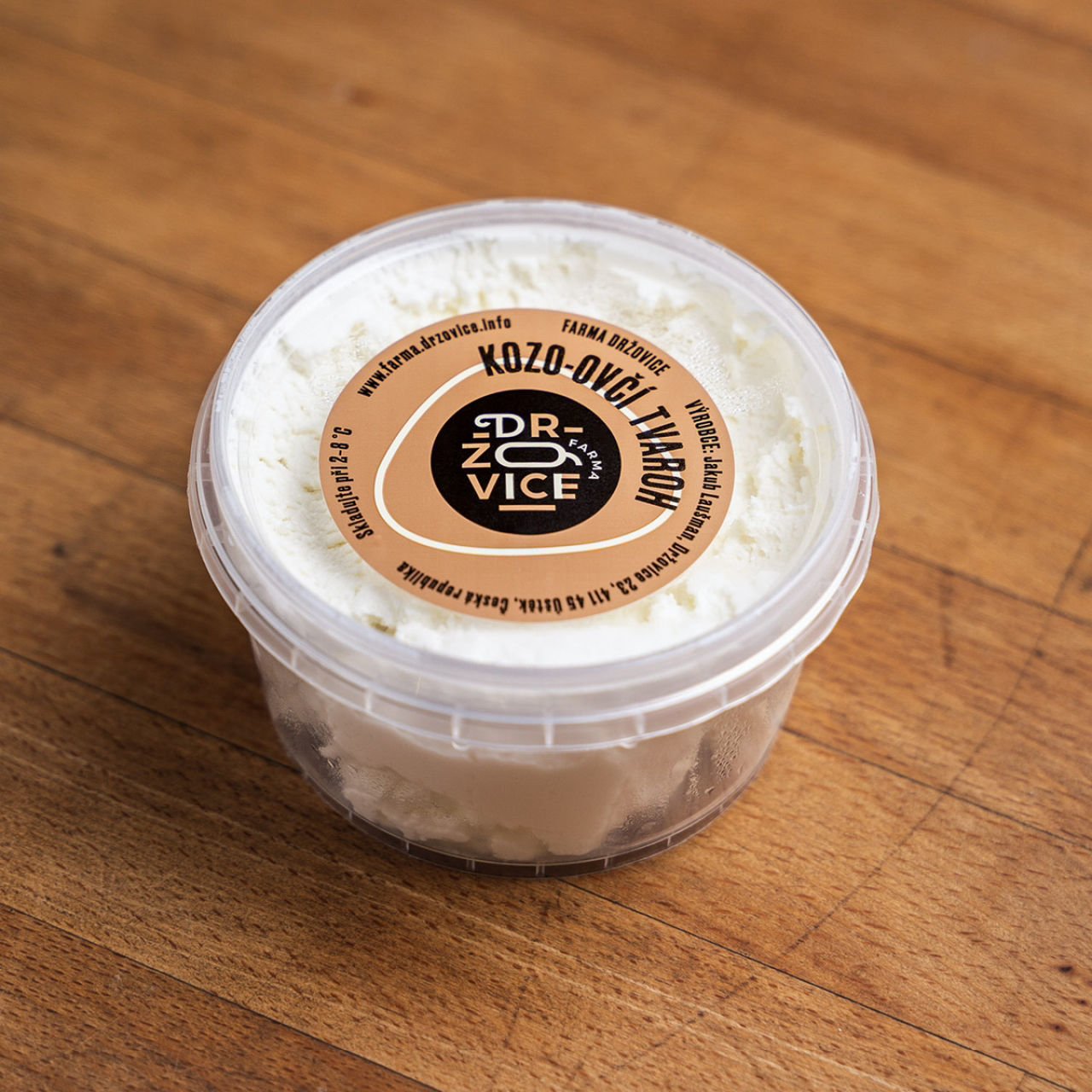 Složení: plnotučné mléko kozí 60% a ovčí 40%, mlékařské kultury, syřidlo, sušina min. 30%, TVS 45%, obsah tuku min. 14%
