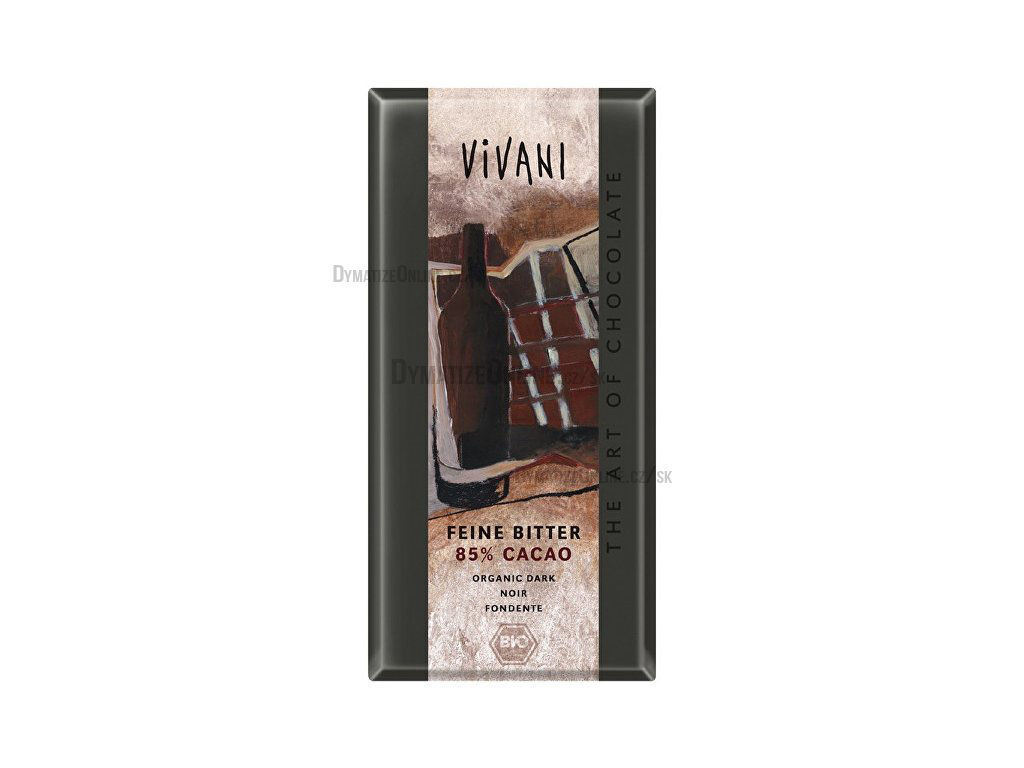 SLOŽENÍ: kakaová hmota, kakaové máslo, přírodní třtinový cukr. Všechny suroviny pocházejí z kontrolovaného ekologického zemědělství. Obsah kakaové sušiny nejméně 85 %.