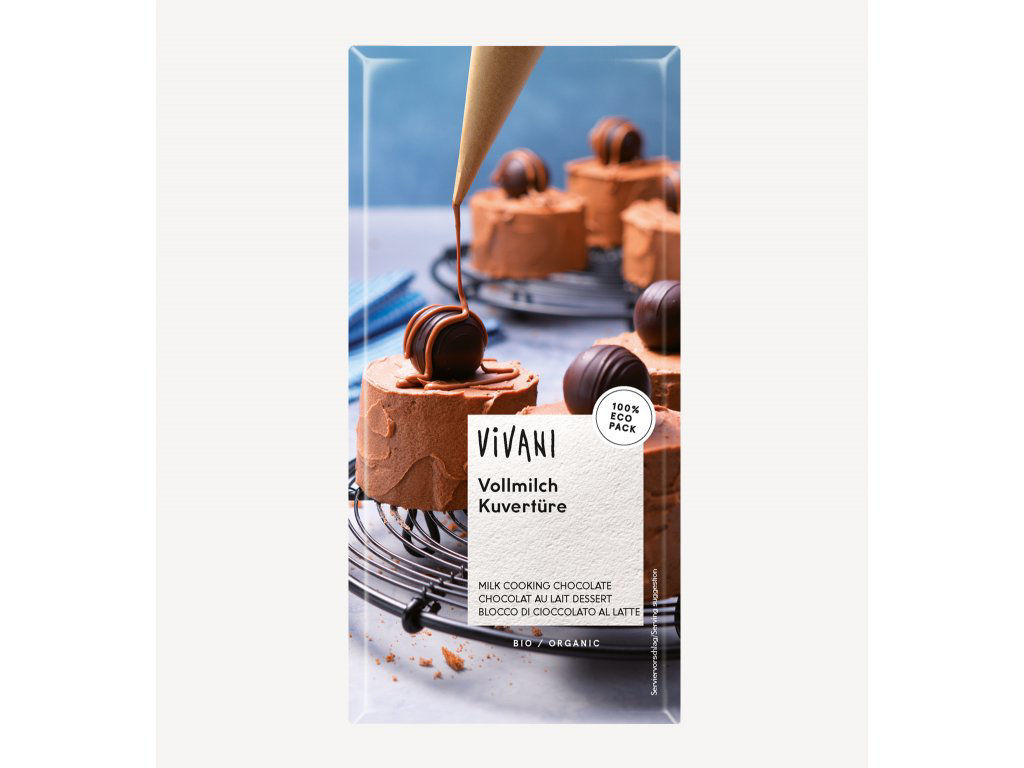 SLOŽENÍ: přírodní třtinový cukr, kakaové máslo, sušené mléko 18 %, kakaová hmota, emulgátor: slunečnicový lecitin, výtažek z Bourbon vanilky. Všechny suroviny pocházejí z kontrolovaného ekologického zemědělství. Obsah kakaové sušiny nejméně 35 %.