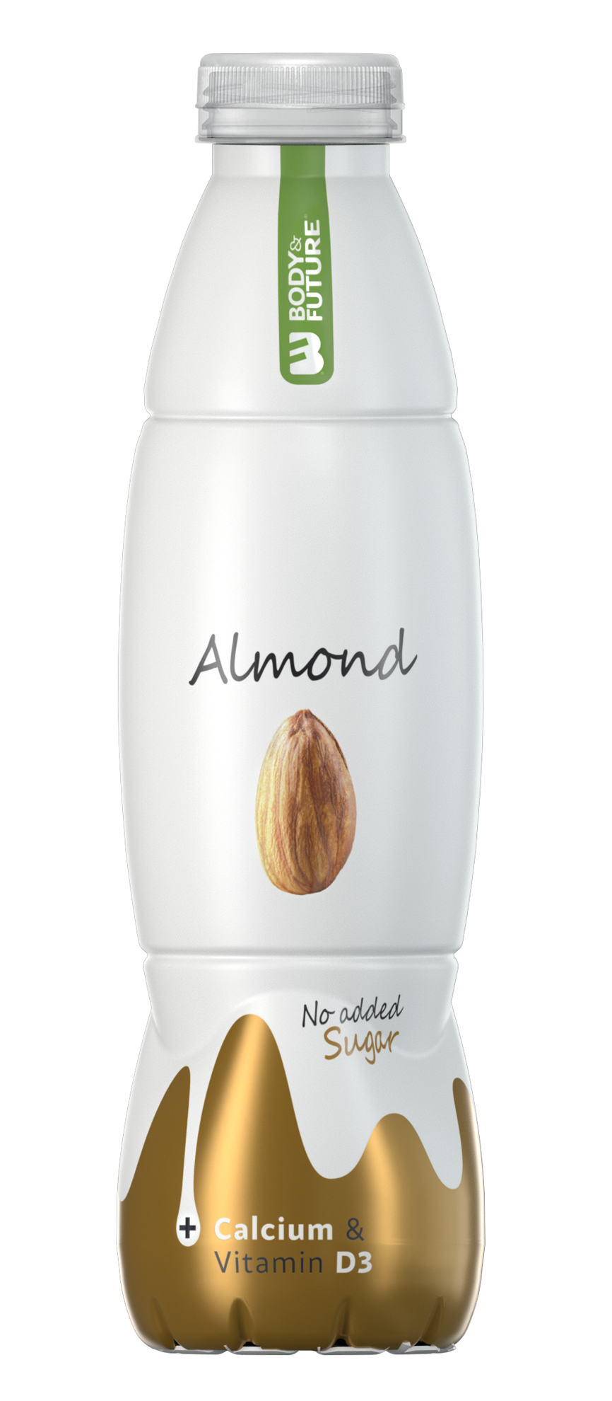 Pramenitá voda, mandle 4%, rastlinno - ovocný extrakt (svätojánsky chlieb, jablko, hrozno), vápnik, emulgátor: slnečnicový lecitín, morská soľ, stabilizátor: guma gellan, vitamín D3.