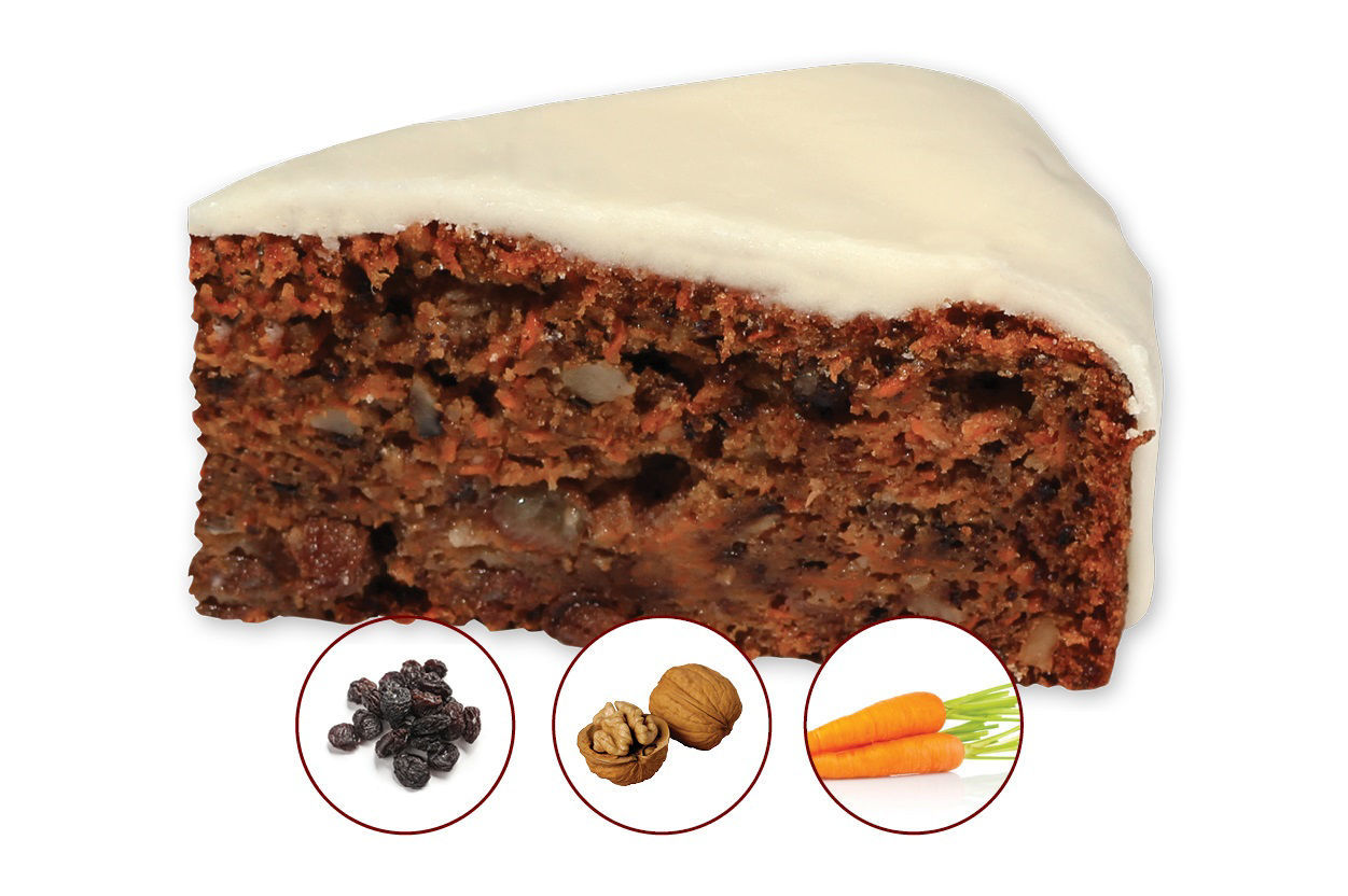 Složení: mrkev, slunečnicový olej, pšeničná mouka, vejce, třtinový cukr, vlašské ořechy, rozinky, cukr, vanilková esence, sůl, bio-kypřidlo, jedlá soda, poleva, cukr, máslo, citron. Váha cca 100g.