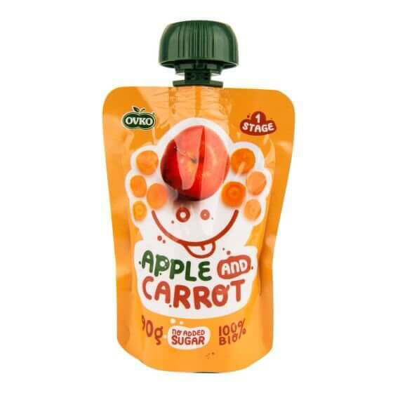 Složení: Jablkový protlak* 78 %, karotkový protlak* 22 %. Pasterizované. *produkt kontrolovaného ekologického zemědělství
