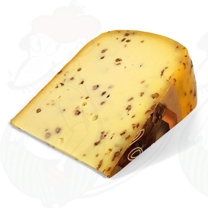 Složení: Pasterované kravské MLÉKO, sůl, vlašské OŘECHY (4,1%), mikrobiální syřidlo, mlékárenské kultury (MLÉKO), konzervační látky: E251. Přírodní aroma (MLÉKO, OŘECHY). Tuku v sušině 50%,
