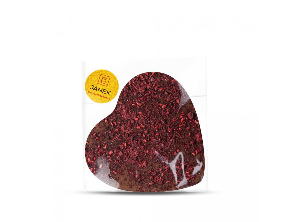 Ingredience: kakaová hmota, kakaové máslo, sušené plnotučné mléko, drcená ostružina, drcená malina (2%), cukr, emulgátor: sojový lecitin, aroma: přírodní vanilka
