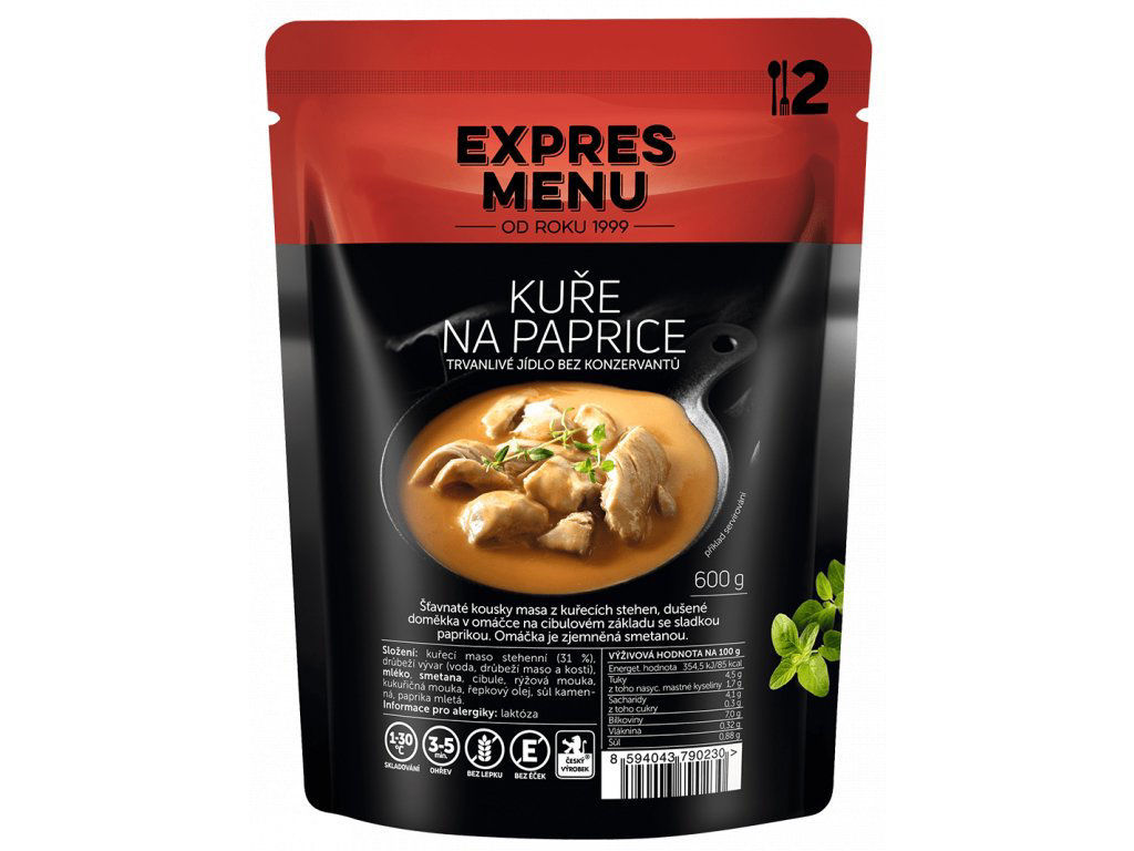 Složení: kuřecí maso stehenní (31 %), mléko, smetana, voda pitná, cibule, slunečnicový olej, kukuřičná mouka, rýžová mouka, sůl, mletá paprika