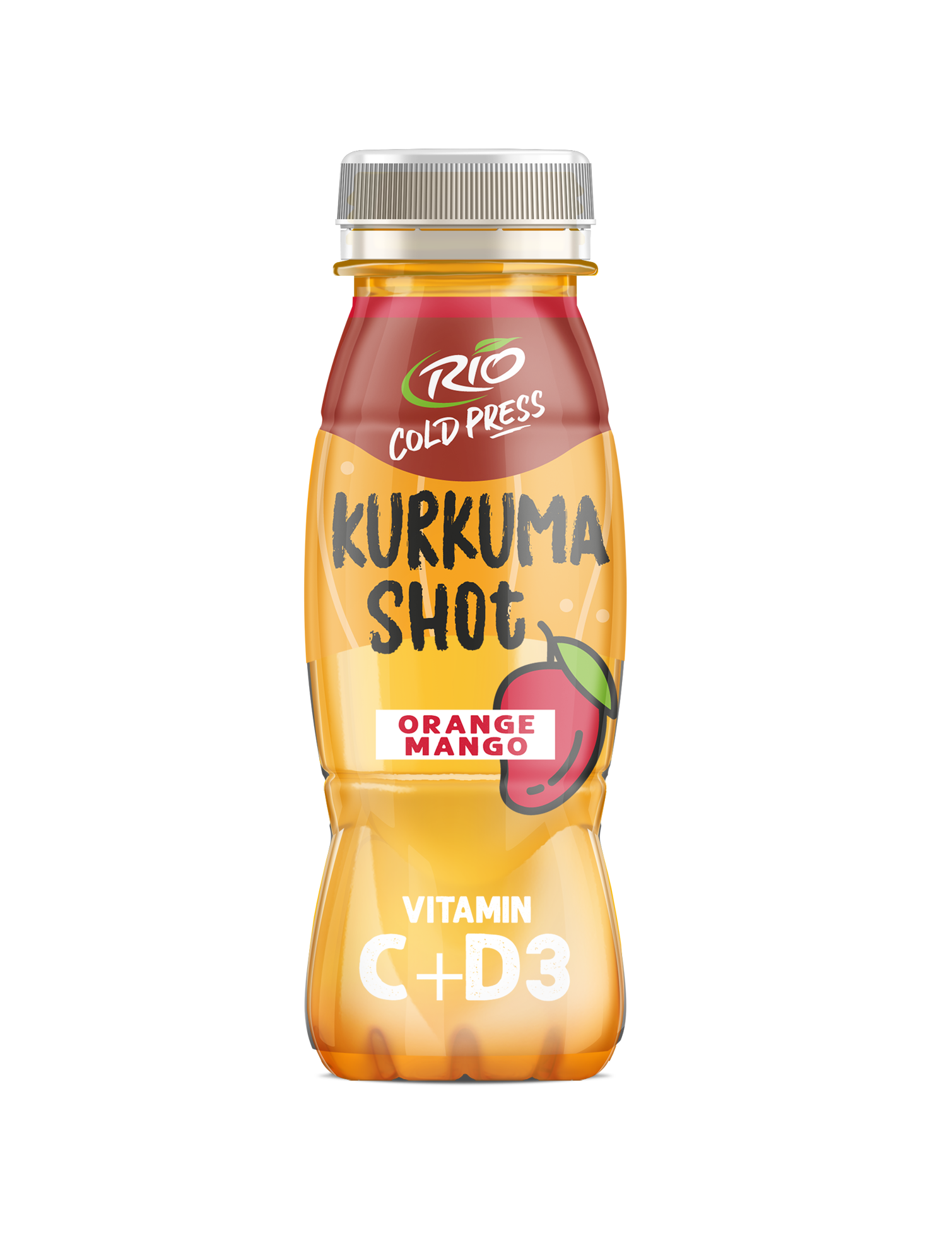 Pomarančová šťava lisovaná za studena 40%, pramenitá voda, mangové pyré 13%, rastlinno- ovocný extrakt (svätojánsky chlieb, jablko), zázvorové pyré 4,3%, kurkuma 0,2%, citrónová šťava, vitamíny C a D3.