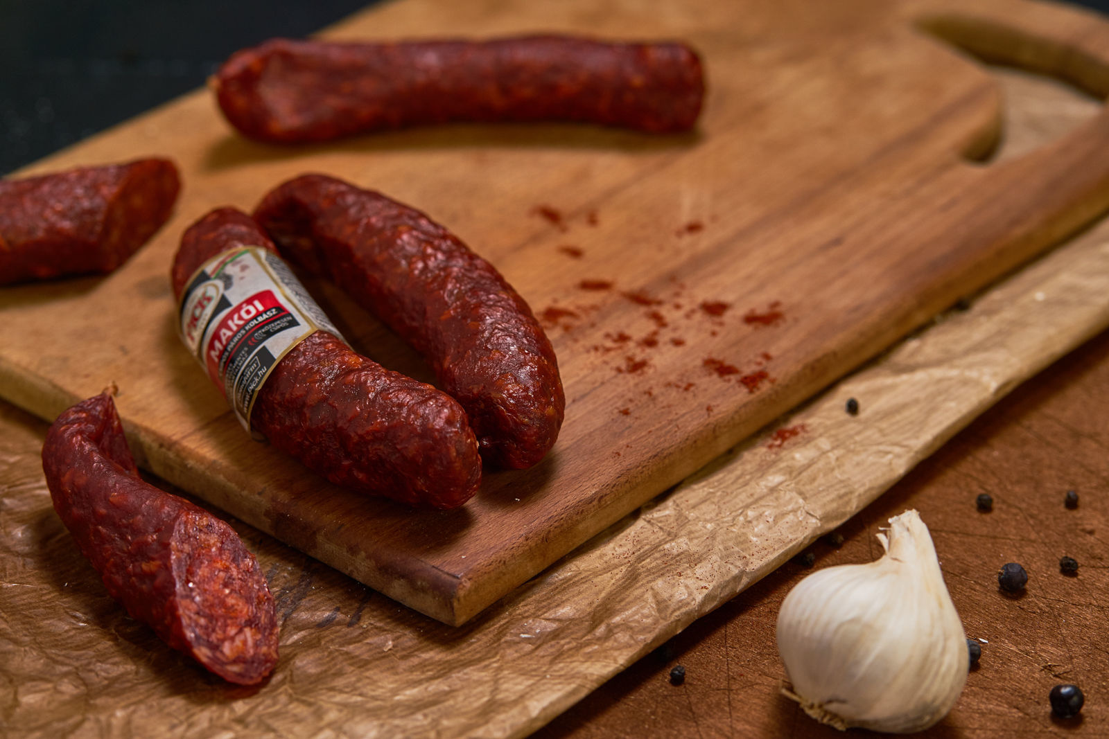 Složení - vepřové maso, vepřové sádlo, jedlá sůl, paprika pálivá mletá (1,8%), koření, dextróza, extrakty koření, konzervant E250, 100g výrobku je vyrobeno ze 148g masa