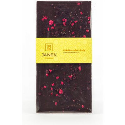 Ingredience: kakaová hmota 64 %, kakaové máslo, drcené lyofilizované (mrazem sušené) maliny a ostružiny (2%), cukr, emulgátor: sojový lecitin, aroma: přírodní vanilka