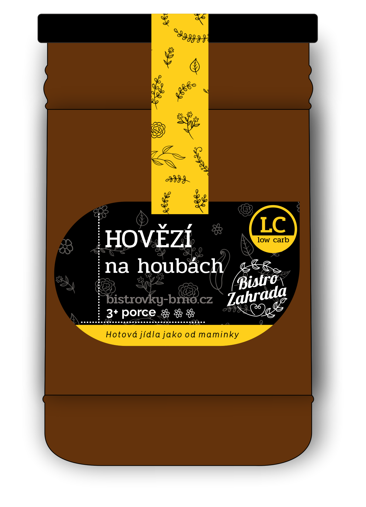 Hovězí zadní 38,5% (390 g v surovém stavu), cibule 27,5%, olej 8%,paprika čerstvá 8%, žampiony čerstvé 6,5%,kedluben 5,5%, houby shiitake 1,5%, sůl 1,5%,pepř černý celý 1%, česnek 1%, kmín 0,5%
