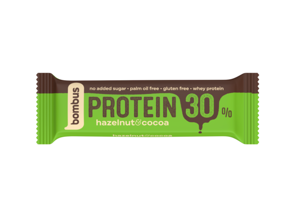 Směs proteinů 30,4% (koncentrát syrovátkových 15% a mléčných bílkovin, sójový proteinový izolát), mléčná čokoláda se sladidlem 17% (sladidlo: maltitol, kakaové máslo, sušené odstředěné mléko, kakaová hmota, kakaový prášek se sníženým obsahem tuku, emulgátor: řepkový lecitin, aroma), oligofruktóza, sladidlo: maltitol, krém se sladidlem 10% (sladidlo: maltitol, kakaové máslo, řepkový olej, sušená syrovátka, sušené odstředěné mléko, emulgátor: řepkový lecitin, aroma), zvlhčující látka: glycerol, řepkový olej, pražená jádra lískových ořechů 3%, hydrolyzovaný kolagen, kakaový prášek, emulgátor: řepkový lecitin, aroma. Může obsahovat arašídy a suché skořápkové plody. Bezlepkový výrobek. Nadměrná konzumace může vyvolat projímavé účinky.