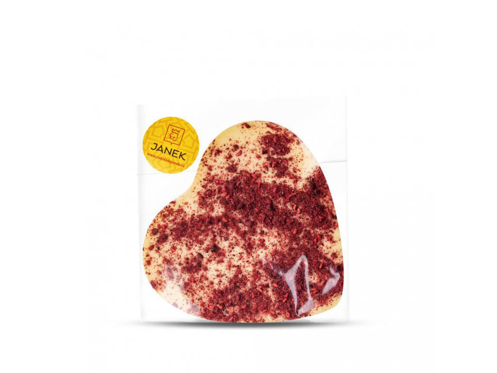 Ingredience: kakaové máslo 38 %, sušené plnotučné mléko, drcená ostružina, drcená malina (2%), cukr, emulgátor: sójový lecitin, aroma: přírodní vanilka